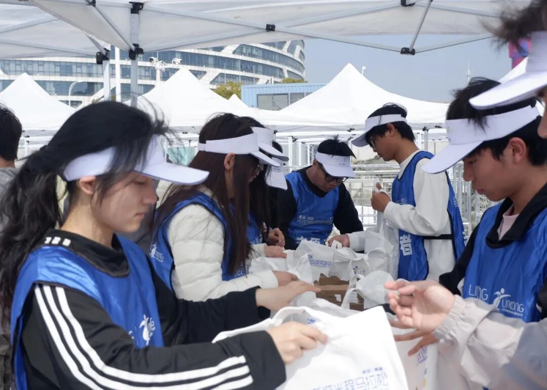 赛场前沿,他们是暖心服务的“青春使者”。志愿者们始终面带微笑,活跃在每一个服务点位。入口处,他们是热情洋溢的引导员,主动上前、耐心指引;登记台前,他们是严谨细致的核验员,认真核对信息,确保流程规范;物资分发区,他们是贴心温暖的服务者,双手递上号码布和参赛包,并送上“安全完赛”的真挚祝福。