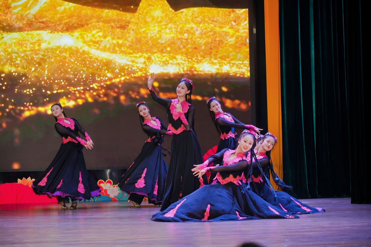 活动现场,舞蹈《青春放歌》以跃动之姿尽展青春锋芒,马头琴独奏《万马奔腾》以激昂旋律奏响奋进强音,舞蹈《寻梦彼岸》以柔美舞步诉说追梦执着,压轴合唱《我爱你中国》更怀赤子深情点燃全场共鸣……台上演员倾情演绎,台下掌声经久不息。实践团用旋律传递温暖,用舞姿诠释力量,让艺术与青春理想在此刻交融。