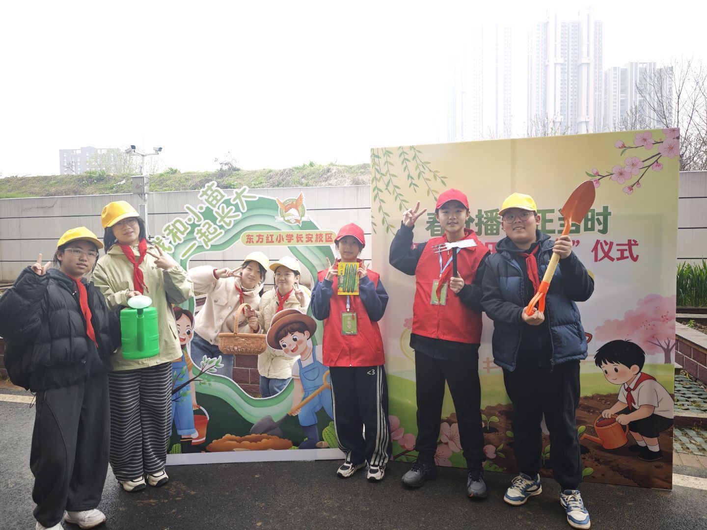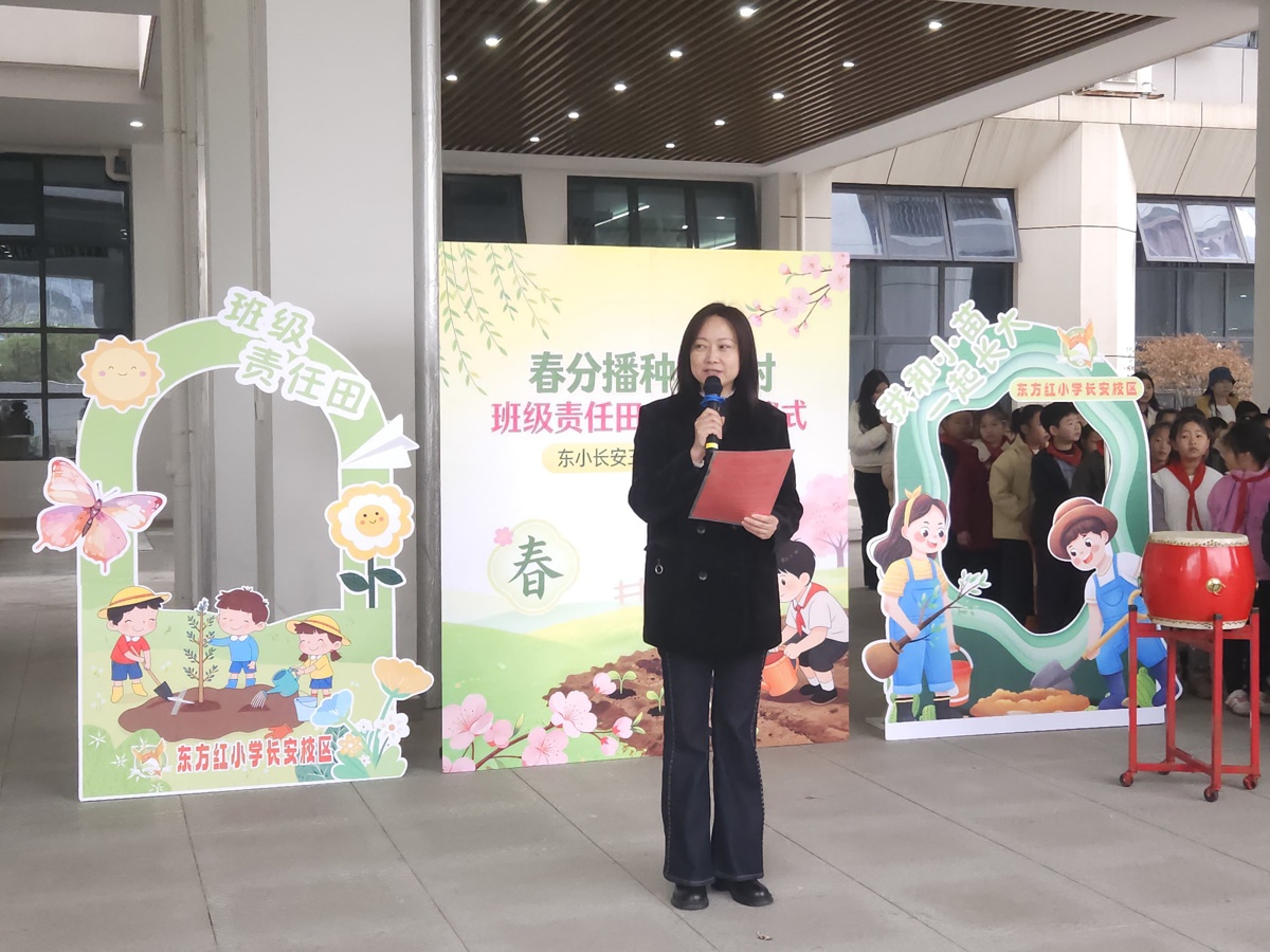 “咚!咚!咚!”3月20日春分时节,武汉市东方红小学长安校区操场上,三声清脆的鼓声划破春日宁静。全校17个班级的学生代表与教职工、社区工作者,手持幼苗、水壶和小铲走向校园里整齐排列的24块种植池,一场将节气文化、劳动教育与班级自治融为一体的春耕活动正式拉开帷幕。