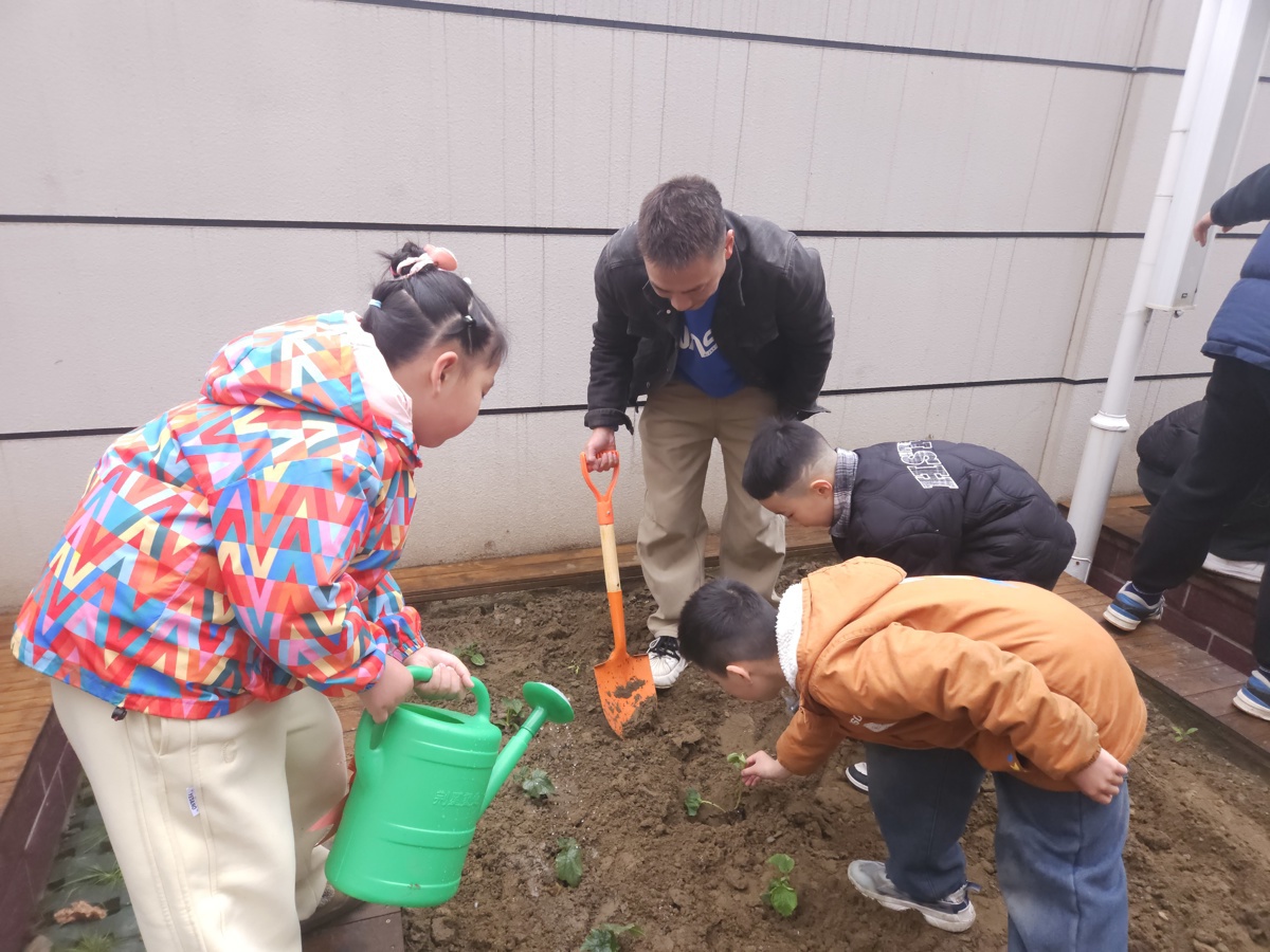 劳动老师随后在种植园开起“春分小课堂”:“沟要挖3厘米深,种子间距5厘米,浇水要浇透但不能积水。”孩子们蹲在田边听得格外认真,随后有序进入班级责任田,分工协作开沟、撒种、覆土、浇水,泥土沾满小手小脸也毫不在意。