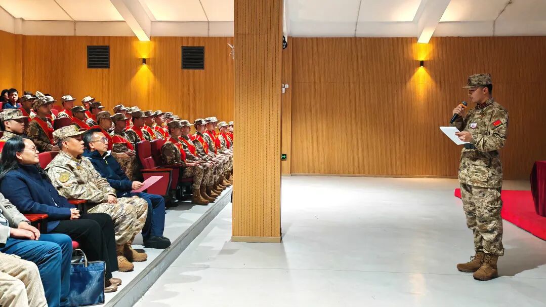 汤一凡勉励全体新兵:“部队是大熔炉,能磨砺出最坚强的意志。希望大家快速适应,服从命令,在训练中磨砺意志。这段军旅经历,将是你们人生最亮眼的底色、最坚实的底气。愿大家淬炼成钢,行稳致远!”