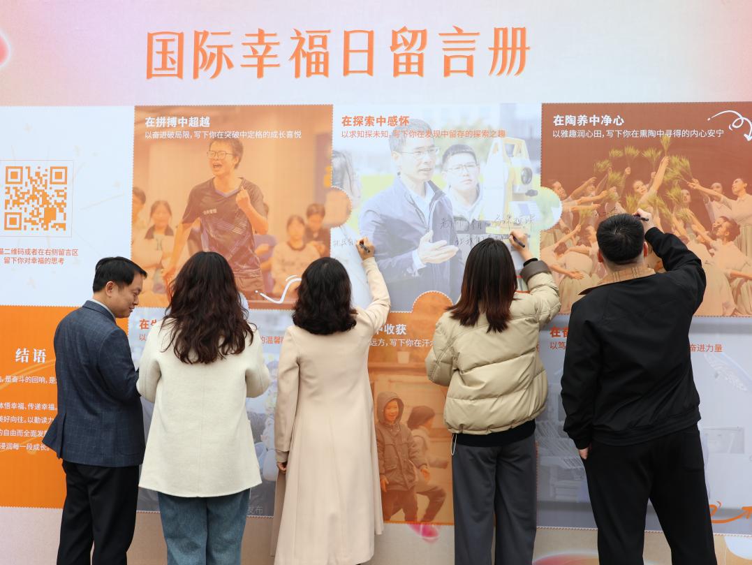 幸福是人类的共同追求,是中国式现代化中“人的全面发展”的重要体现。3月20日,华中农业大学举办由公共管理学院主办,校文化建设委员会、校工会指导的“幸福的回响”国际幸福日主题活动在狮子山南广场温情启幕,用丰富多彩的载体带领师生感受幸福、体悟幸福、传递幸福。这是该学院连续第三年举办国际幸福日主题活动。