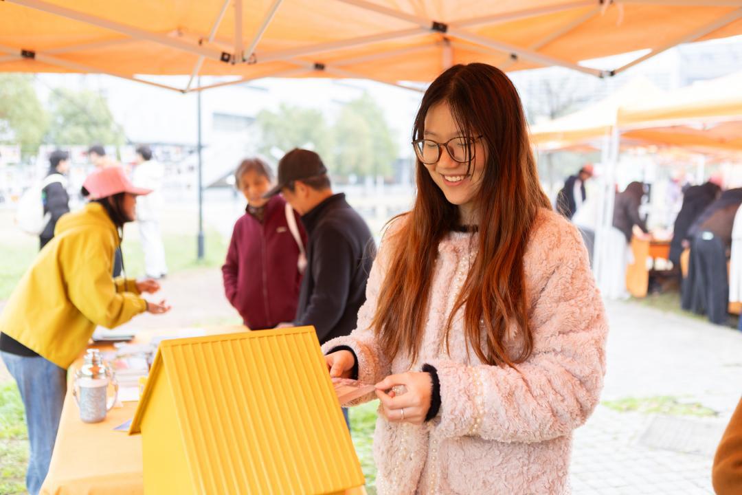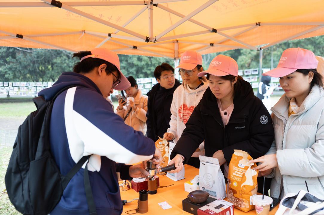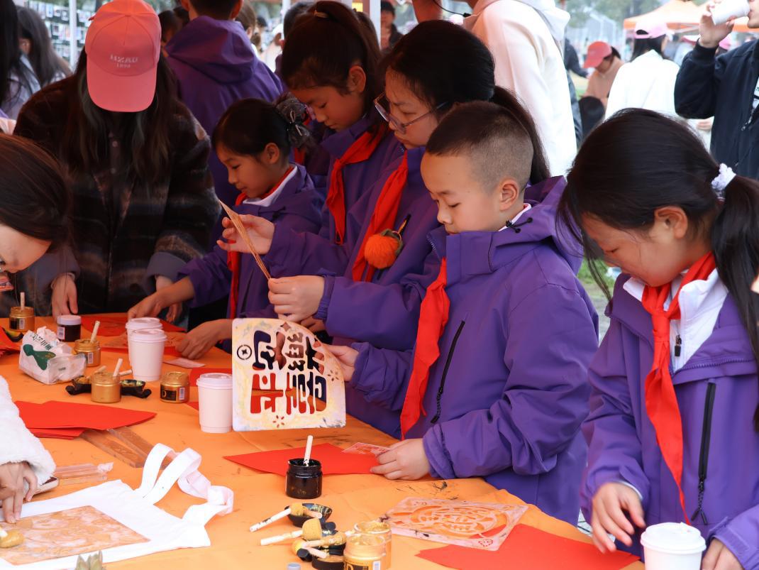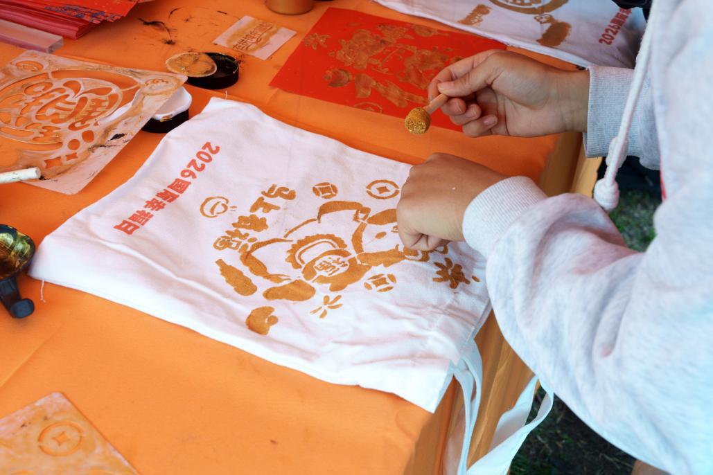 在“指尖幸福:传统手作体验”,福字拓印、手绘帆布包、手作咖啡等活动热闹非凡。师生们一笔一画静心创作,在慢时光里体悟“慢下来的幸福”,感受亲手创造的成就感。