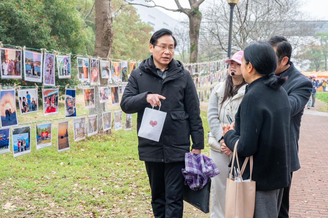 道路两侧,沉浸式幸福照片展格外吸睛。活动以在生活中拾趣、在力耕中收获、在陶养中净心、在拼搏中超越、在探索中感怀、在奋斗中筑基六大维度为脉络,现场展出1800余张幸福影像,定格华农人在实验室潜心钻研、在田间地头躬身耕耘、在运动场奋力拼搏的动人瞬间,一张张照片串联起狮山校园里的烟火气与奋斗志,让幸福具象可感。