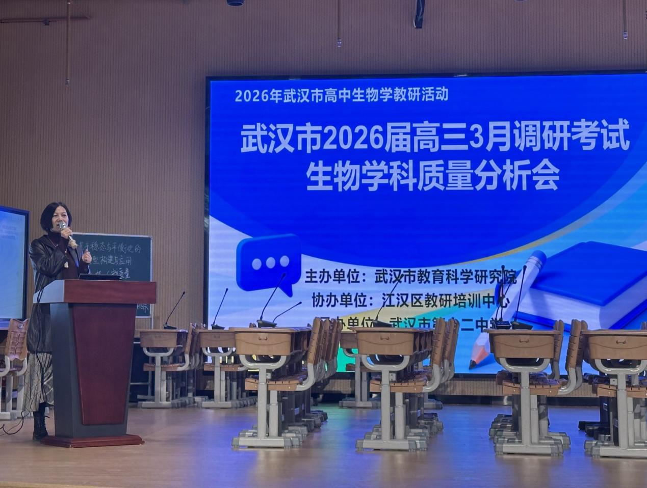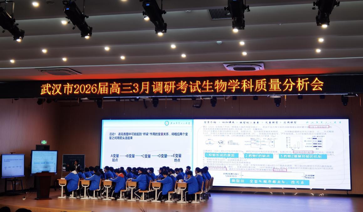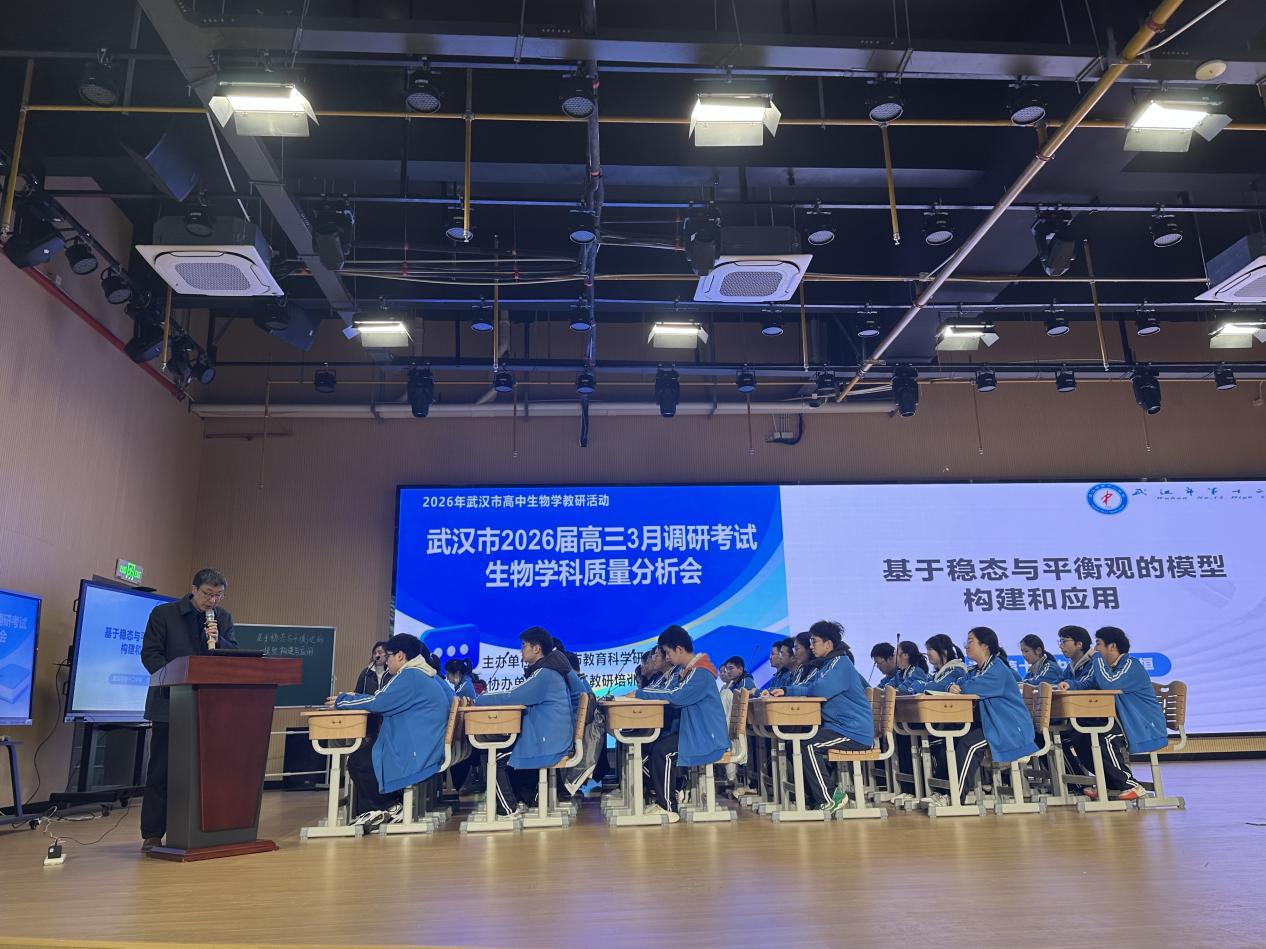 近日,武汉市高三三月调考生物学科质量分析会在武汉市第十二中学举行。分析会由武汉市教科院主办,江汉区教培中心协办,十二中承办,围绕数据剖析、课堂观摩、经验交流三大环节,为二轮复习明确方向。
