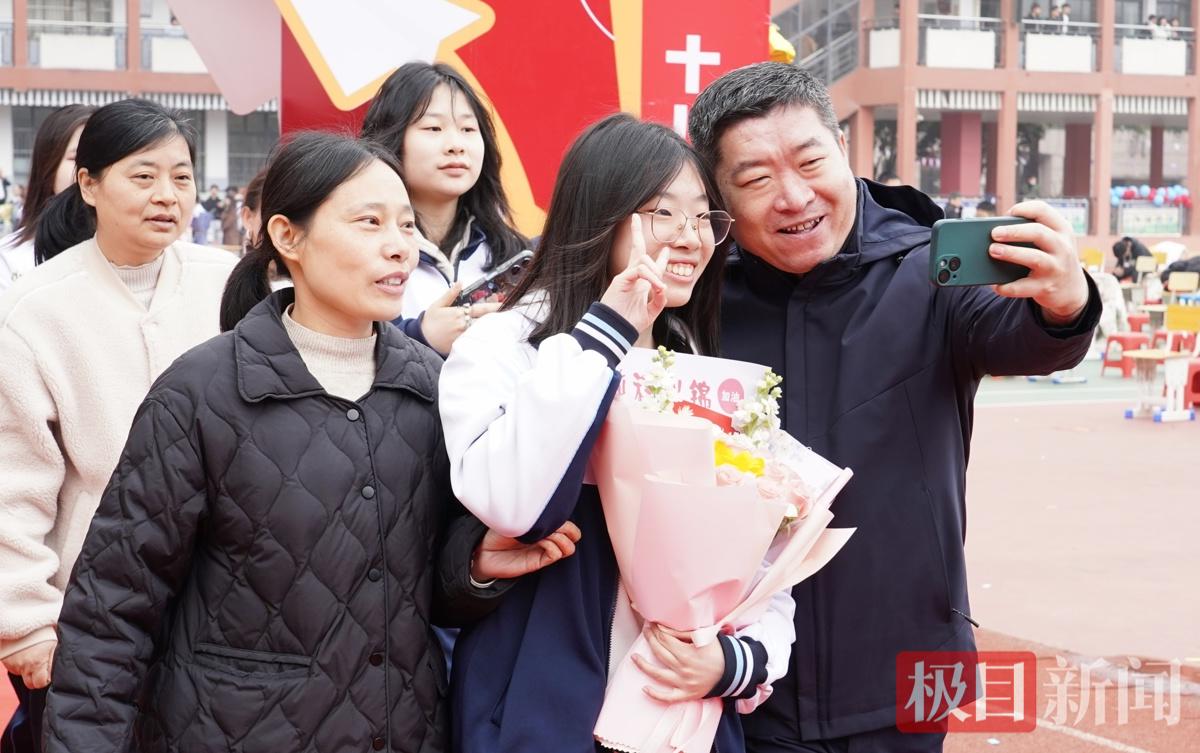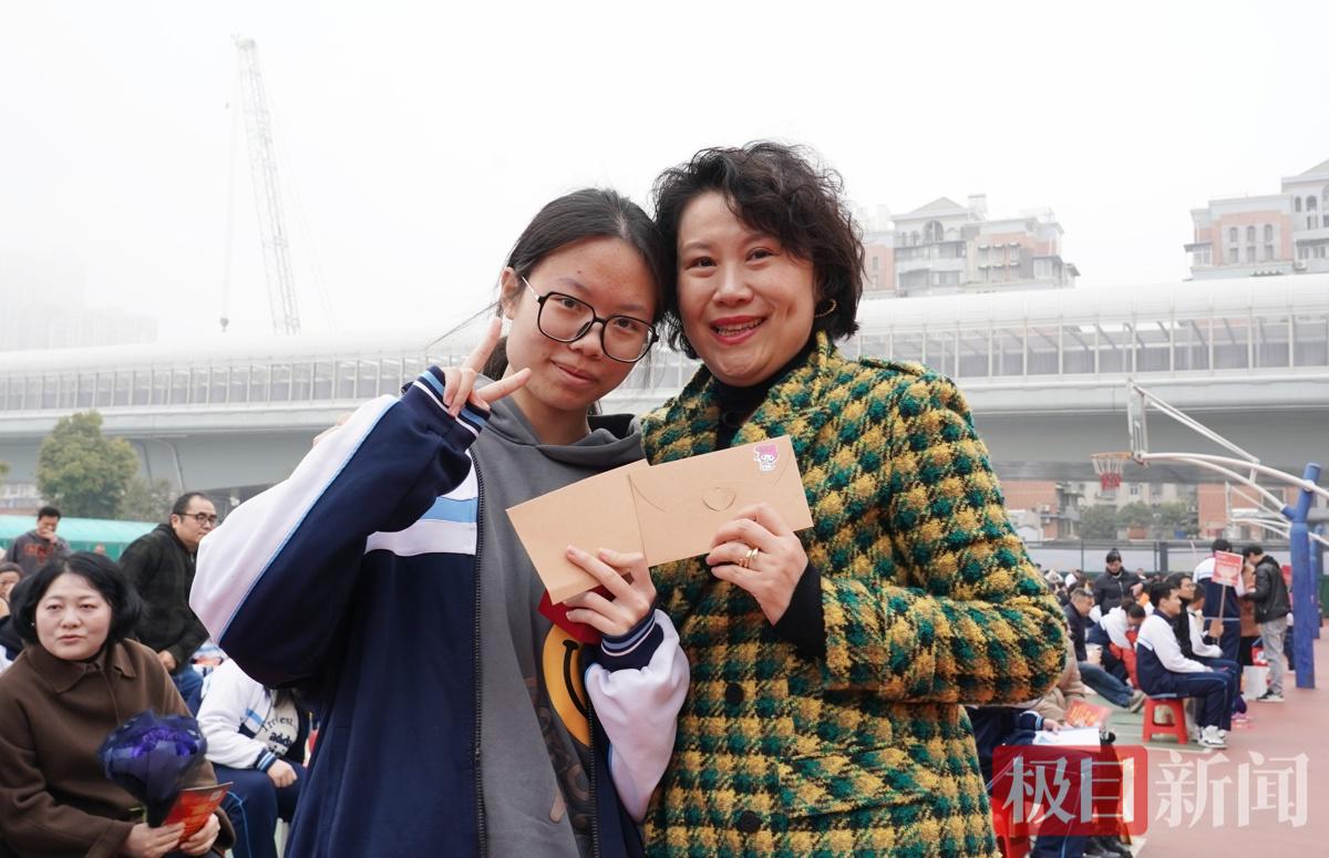 家长代表、高三(11)班任馨阁妈妈在发言中数度哽咽:“我们最欣慰的不只是你们成绩的进步,更是你们始终阳光善良、眼里有光。”随后,武汉大学学生刘宇菲、武汉理工大学学生黄文中作为优秀毕业生代表回到母校,分享奋斗历程。