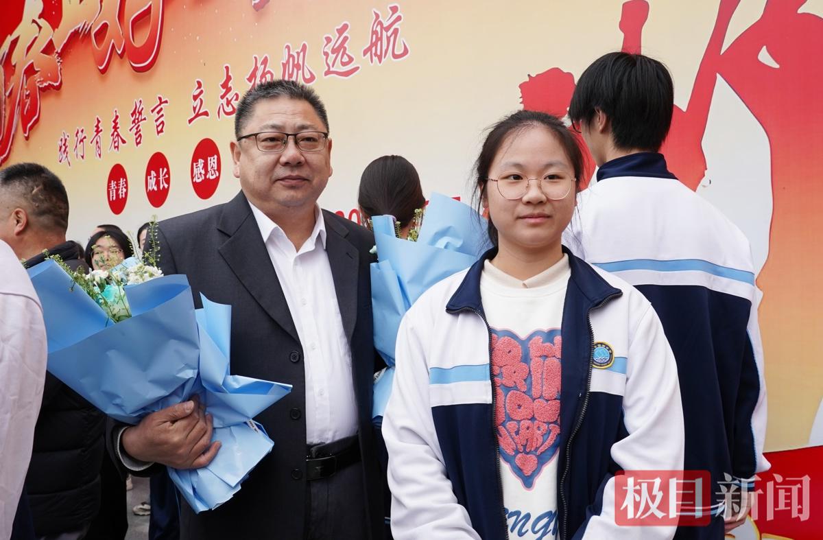 贺欣怡同学手里一直攥着两样东西——一束献给班主任的鲜花,和妈妈悄悄塞给她的信。“刚上高中时不太适应,是班主任和各科老师给了我很大的支持,主动帮我查漏补缺,成绩才有了比较大的提升。”她说,这份感激一直想找个机会说出口。而妈妈的信,她没舍得拆开,直到仪式间隙才小心翼翼地展开。信不长,最后一段写着:“不要把一时的得失当作人生的全部,你永远有我们做后盾。”旁边还放着一块手表和一束花。“妈妈提前准备的,我都不知道。”贺欣怡说,这份鼓励,是她备战高考“最大的底气”。