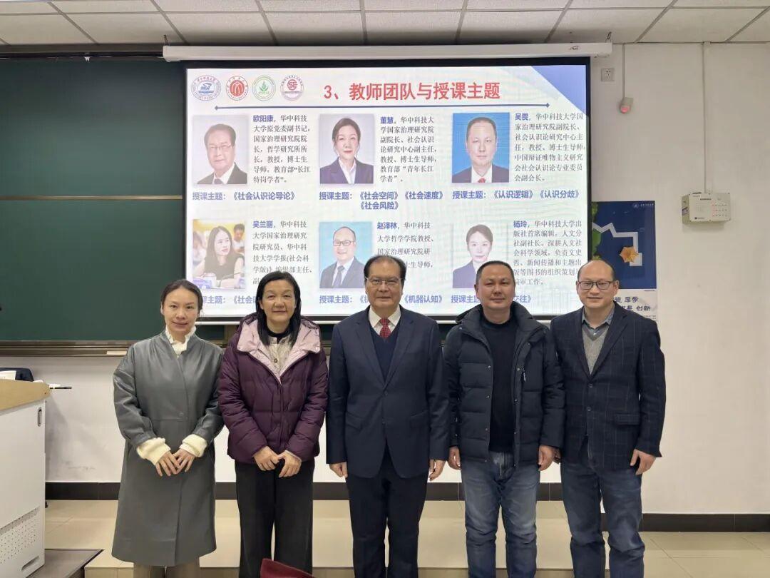 在正式授课之前,欧阳康教授向同学们介绍了“社会认识论”系列课程的授课团队,团队汇聚了在哲学、社会认识论、计算机、行政管理等学科领域颇有建树的资深教授,在理论阐释与学科交叉方面展现了独特优势。随后,欧阳康教授介绍了“社会认识论”十大主题之间的有机联系:从认识逻辑的基础探讨,到社会时间与空间的双维展开,再到机器社会等新兴议题的前沿探索。这些主题环环相扣,既构建了从经典到当代的知识谱系,又为学生提供了一把理解社会认知复杂性的思想钥匙。