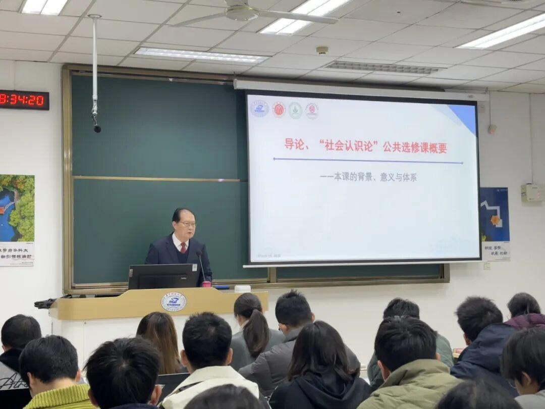3月19日晚,华中科技大学“社会认识论”全校公共选修课第二期开课暨“社会认识论导论”第一讲正式开讲。课程吸引了来自该校光学与电子信息学院、人工智能与自动化学院、材料科学与工程学院、计算机科学与技术学院、电气与电子工程学院、机械科学与工程学院、物理学院、护理学院、管理学院、经济学院、哲学学院等20个学院的学生踊跃参加,现场座无虚席。