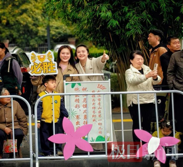 活动当天,家长与孩子们一同走进汉马青山樱花赛道现场,化身活力满满的助威团。孩子们手持加油牌与樱花道具,站在赛道旁挥舞手臂、鼓掌呐喊,清脆响亮的加油声在赛道上空回荡。童真的笑脸、热烈的掌声与烂漫樱花相映成趣,成为汉马赛道上一道温暖又亮眼的风景线。
