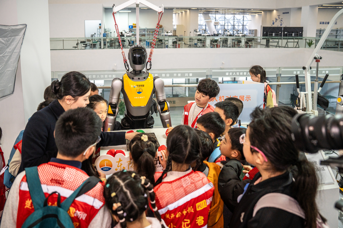 “人形机器人会跑会跳吗?”“它们能帮妈妈做家务吗?”刚踏入湖北人形机器人创新中心,小记者们就按捺不住好奇,一连串问题脱口而出。