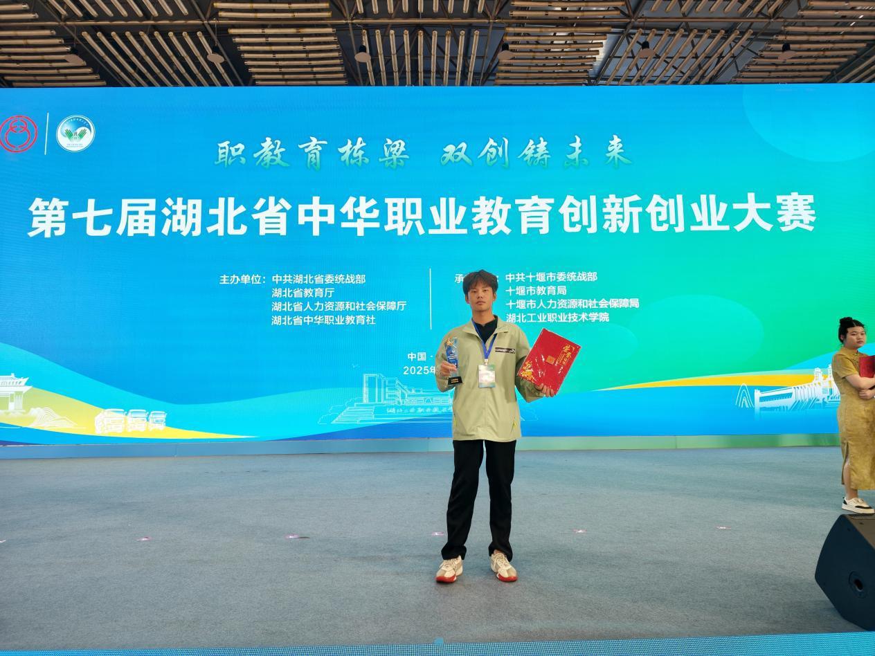 翻开曹子阳的获奖清单,可以看到一连串成绩:2025年湖北省职业院校技能大赛省赛三等奖、第十一届大学生物理实验创新设计竞赛省赛二等奖、中国国际大学生创新大赛省赛银奖、铜奖,中华职教社创新大赛省赛三等奖。他的技术能力已在除锈喷漆机器人、常温常压贮存系统、虚实融合的科学课程平台等多个项目中得到验证。