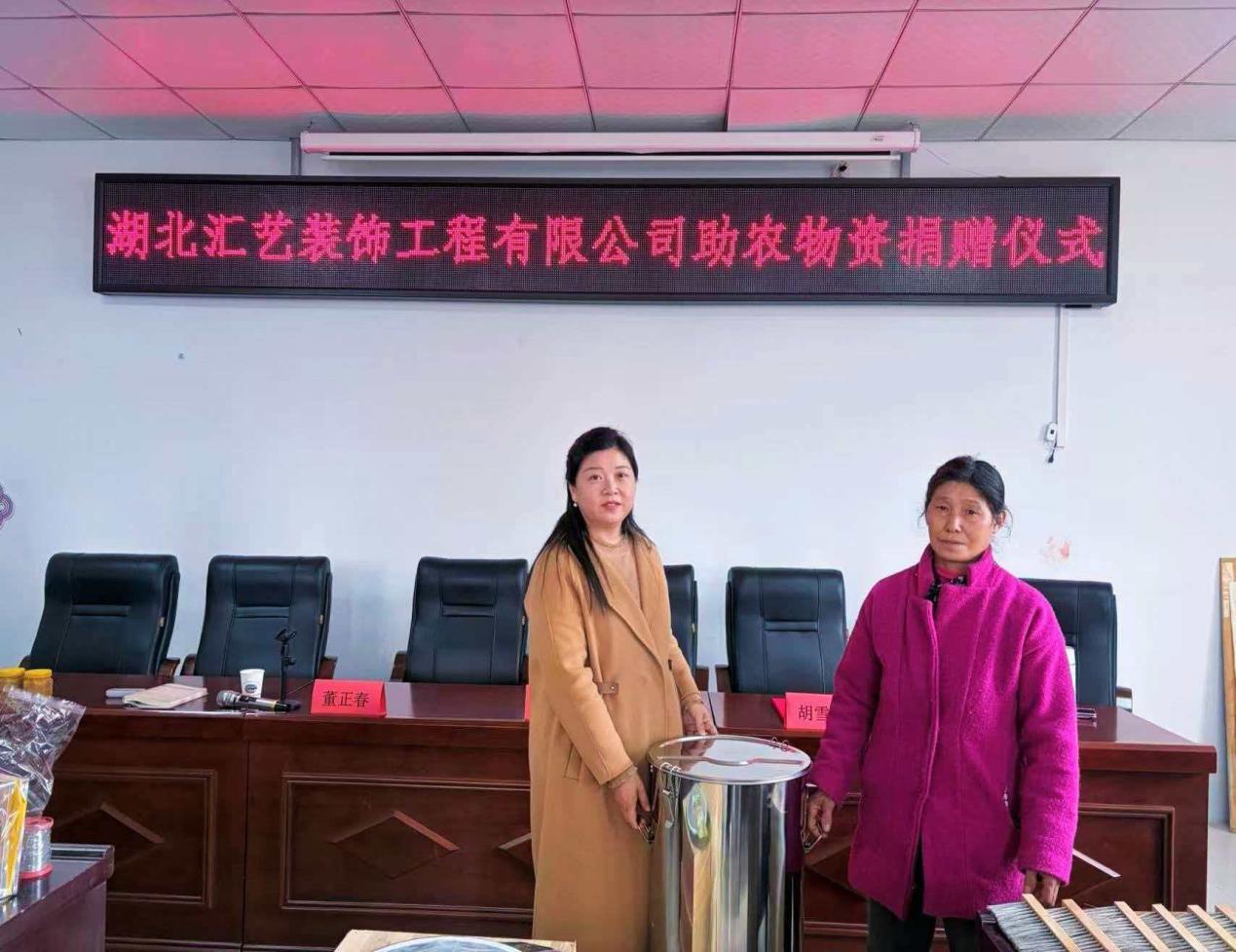 上午9时,捐赠活动在驻村工作队第一书记董正春的主持下正式开始。湖北汇艺装饰工程有限责任公司负责人胡雪莲女士在致辞中分享了企业参与乡村振兴、回馈社会的初心与情怀。她表示,企业的发展离不开社会的支持,能够为茅坪场村的产业发展贡献一份力量,是企业应尽的社会责任。茅坪场镇领导陈骁夏向捐赠企业赠送了荣誉证书,对企业的爱心善举给予高度评价。他同时肯定了驻村工作队在搭建村企“暖心桥”方面所做的努力,勉励茅坪场村要继续推动产业发展,不断拓宽群众增收路径。
