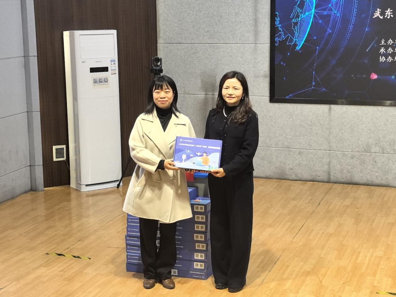 活动伊始,一份特别的礼物让现场暖意融融。武东小学“万笔生花”社团的孩子们捧出亲手绘制的团扇,以中国传统画技法精心创作,将这份独一无二的文创作品赠予到场嘉宾,用稚嫩却真挚的方式表达感谢。随后,省科协向学校捐赠科普资源包,为孩子们的探索之路再添“装备”,让科学的种子在校园里扎下更深的根。