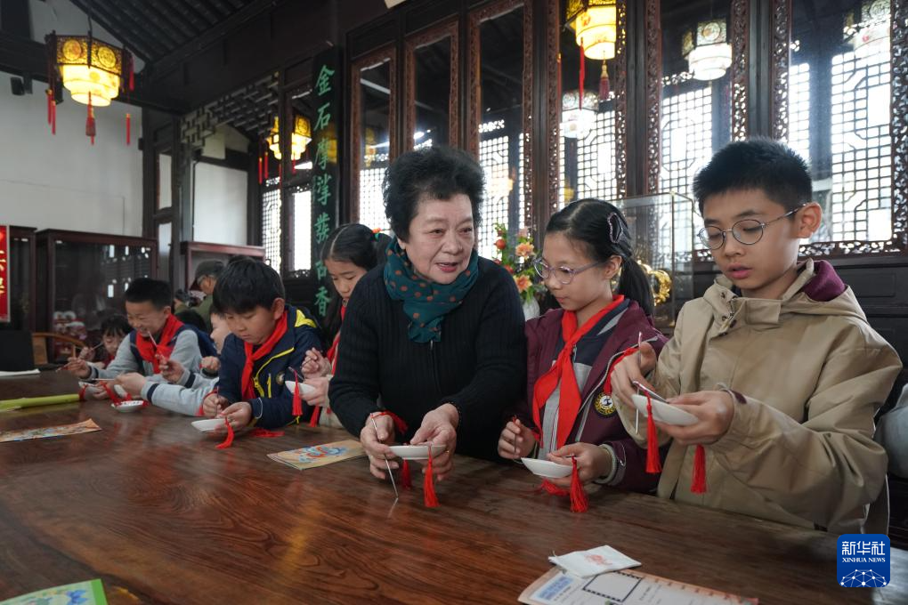 3月26日,非遗传承人给学生教白局技艺。