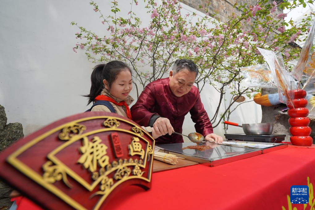 3月26日,学生在体验糖画技艺。