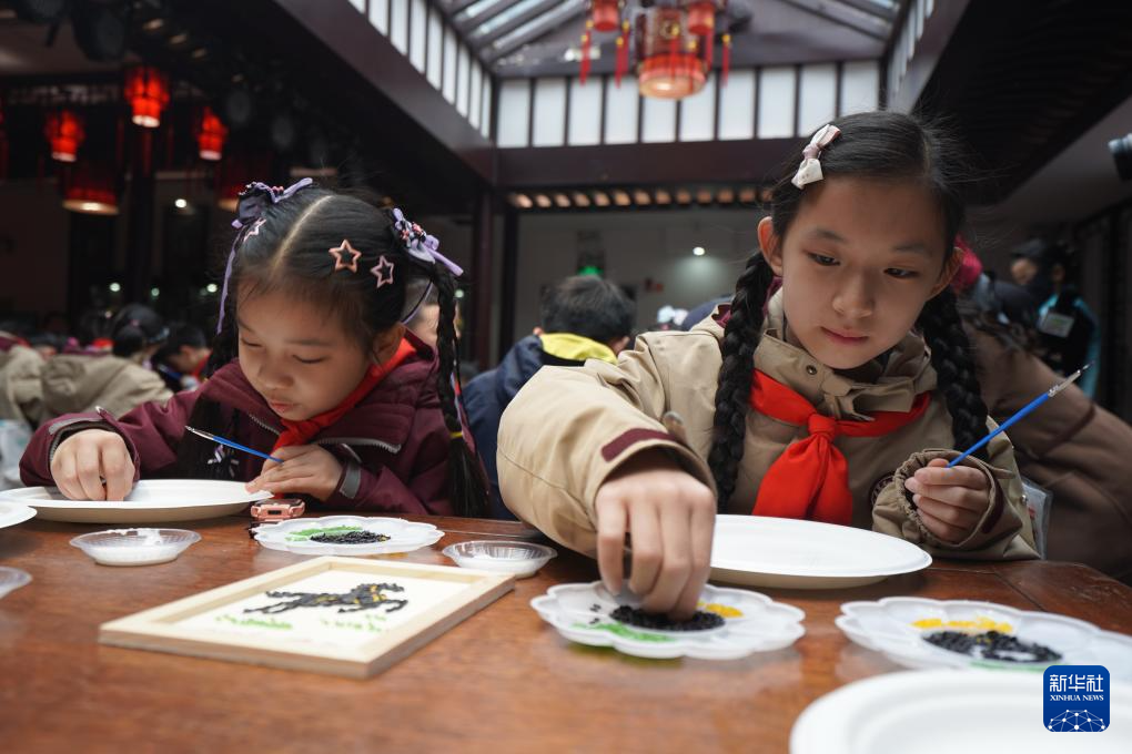 3月26日,学生在体验种子画。