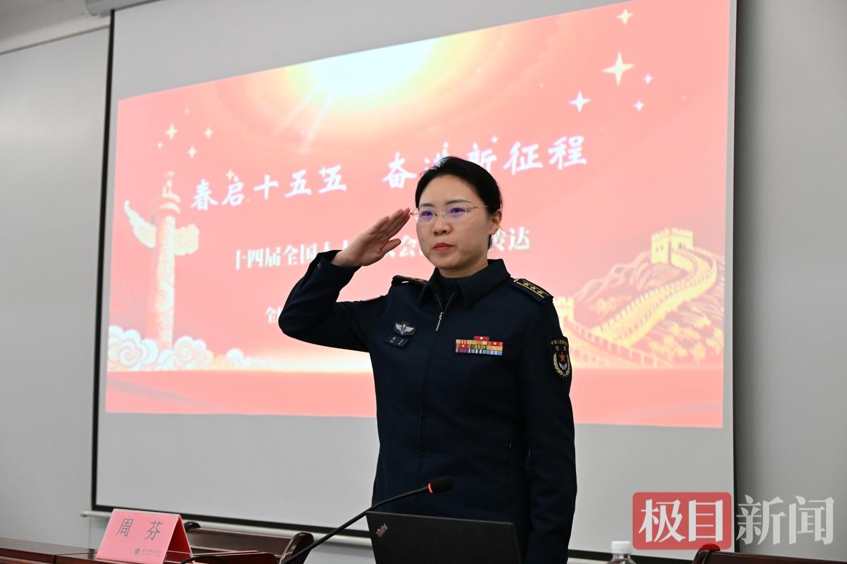 在宣讲会上,周芬代表结合履职实践,以第一视角立足“十五五”开局之年,围绕2026年全国两会盛况,从大会概况、主要任务、主要精神三个维度作系统宣讲。她深入解读政府工作报告、“两高”报告等6个例行报告,传达大会对“十五五”规划纲要、生态环境法典等重要规划与法律草案的审议通过情况,介绍了湖北省代表团参会情况。透过城乡居民增收计划、智能经济新形态、未来产业等两会新词热词,她精准阐释内涵要义,深入解读投资于人、科技自立自强、更高水平平安中国等重要理念。作为习近平总书记出席解放军和武警部队代表团全体会议时的发言代表,她还分享了现场聆听重要讲话、与总书记交流的难忘经历与深切感悟。此次宣讲主题突出、内涵丰富、逻辑缜密,不仅助力师生和基层民警深入领会两会精神,更点燃了他们投身中国式现代化建设、助力“十五五”实现良好开局的热情与信心。同时,宣讲也为该校持续打造“红魂蓝能”思政育人品牌、推进“1+3+N”结对共建机制,推动公安院校与实战相互赋能提供了新思路。
