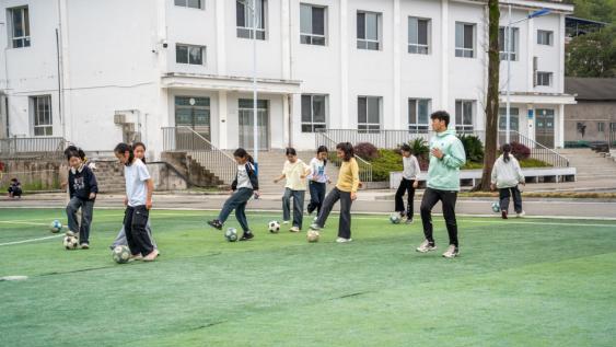 “脚内侧传球要对准球的中下部,身体保持平衡!”绿茵场上,支教团师生耐心示范足球动作,孩子们认真练习,充满热爱。支教团根据年级差异定制教学,融入足球知识与体育精神,让孩子们在提升技能的同时,学会团结拼搏。