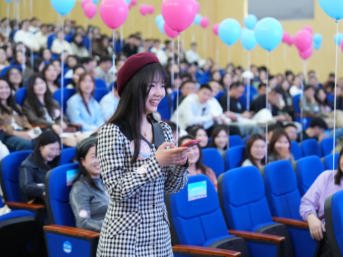 紧随其后的“我想认识TA”环节成为室内交流的高潮。男女嘉宾依次上台,通过自我介绍、择友标准分享、互动问答等环节展开“双向选择”。现场不时爆发出掌声与善意的笑声,气氛既热烈又带着几分紧张。不少参与者与心动嘉宾交换了联系方式,眼神交汇间擦出不少“火花”。