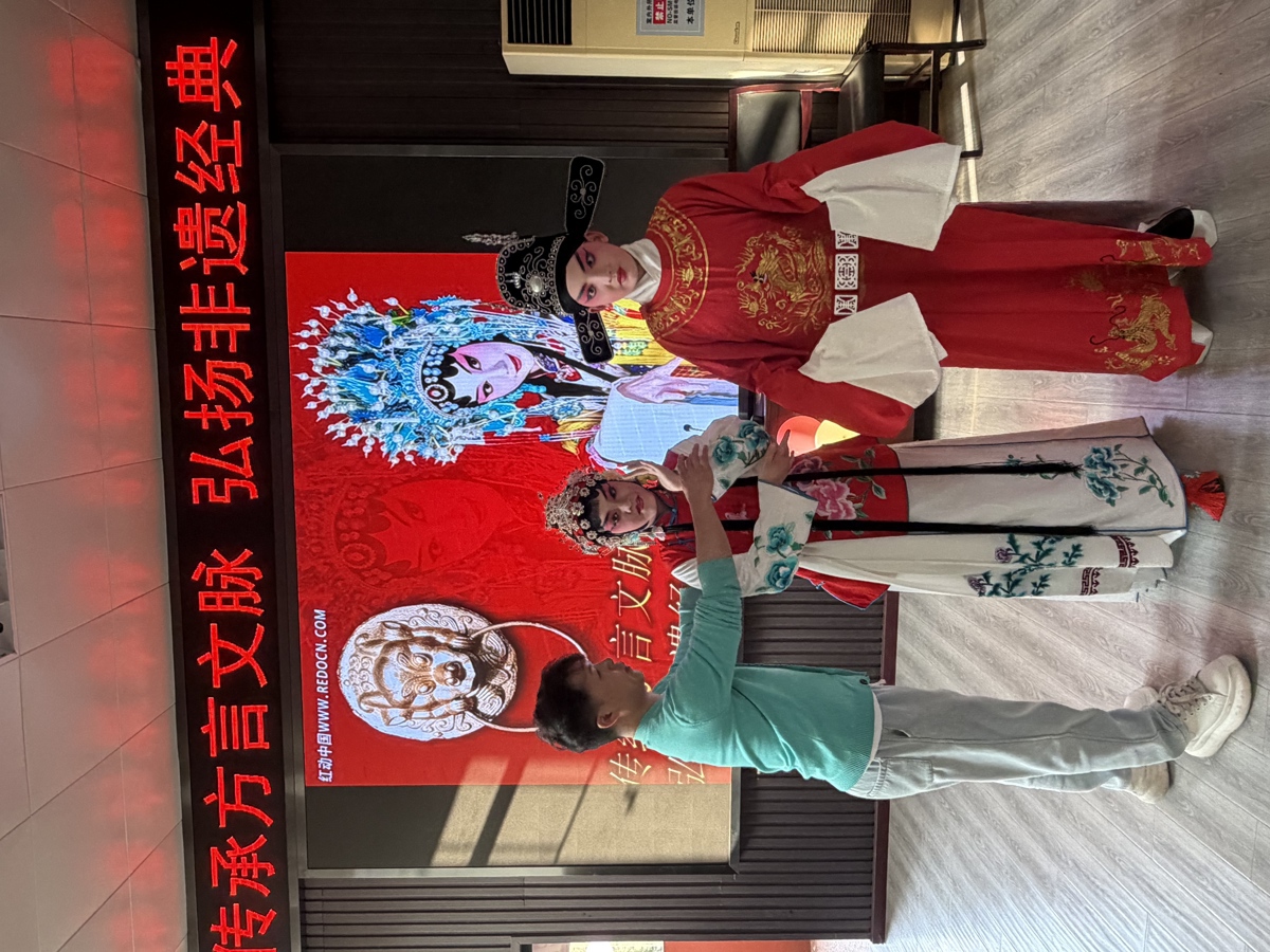 活动中,同学们的感受愈发真切。七年级(1)班的黄羽希说道:“以前总觉得戏曲离我们很远,方言也只是日常交流的工具,通过这次活动我才明白,方言和戏曲是相辅相成的,348个剧种的独特魅力,都离不开方言的滋养。化上戏妆、学唱选段的过程,让我真切触摸到了非遗的温度,也让我更加珍惜家乡的方言文化。”