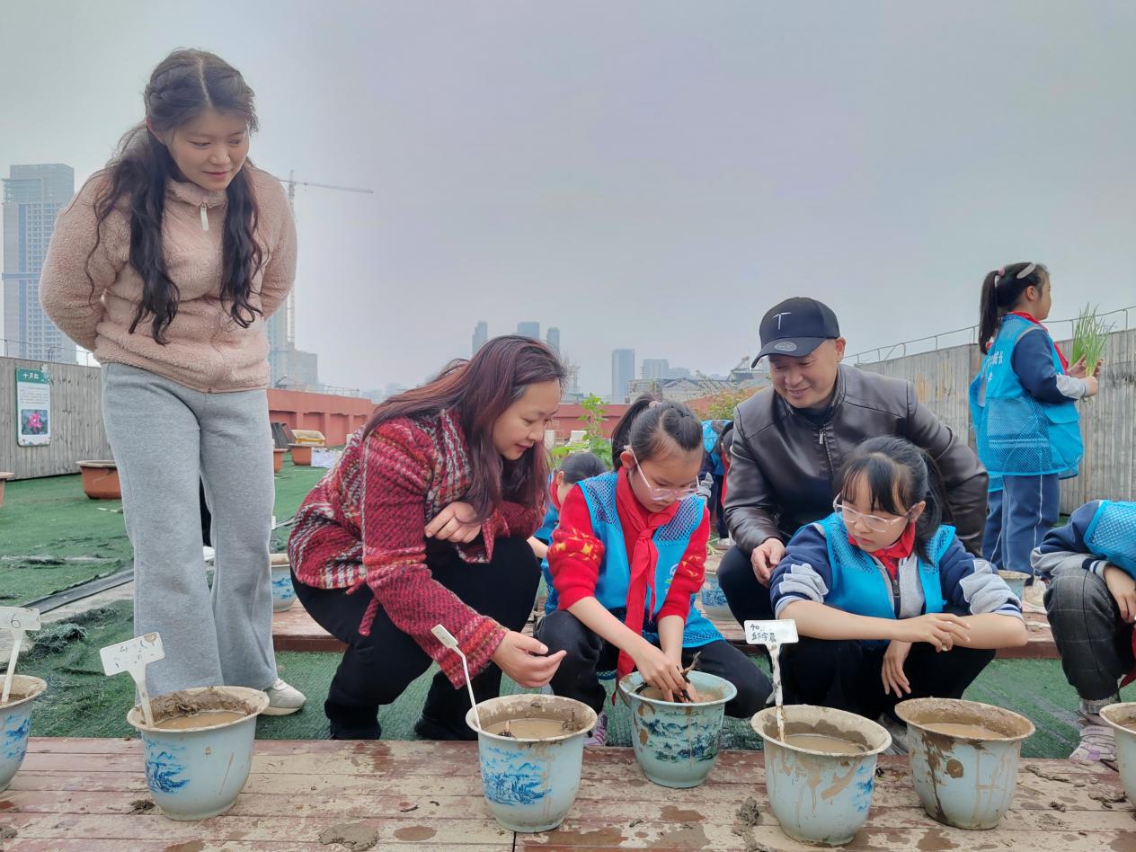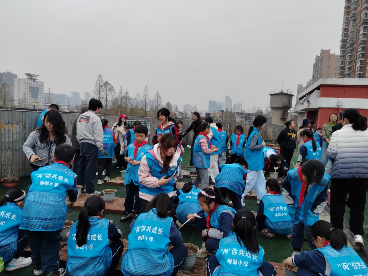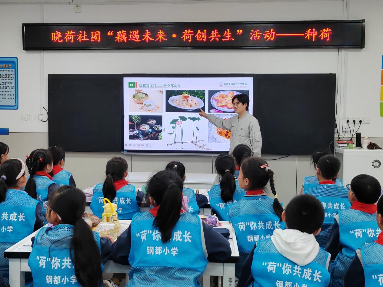 “老师,您看,我选的这段藕节芽苞多饱满!”“我们组做的是对比实验,加了饼肥的这盆,肯定能长得更快!”3月26日下午,武汉市园林科学研究院的专家们走进青山区钢都小学,带领晓荷园社团的40名学生,在楼顶的“开心农场”里,展开了一场别开生面的“藕遇未来·荷创共生”主题科普与实践活动。