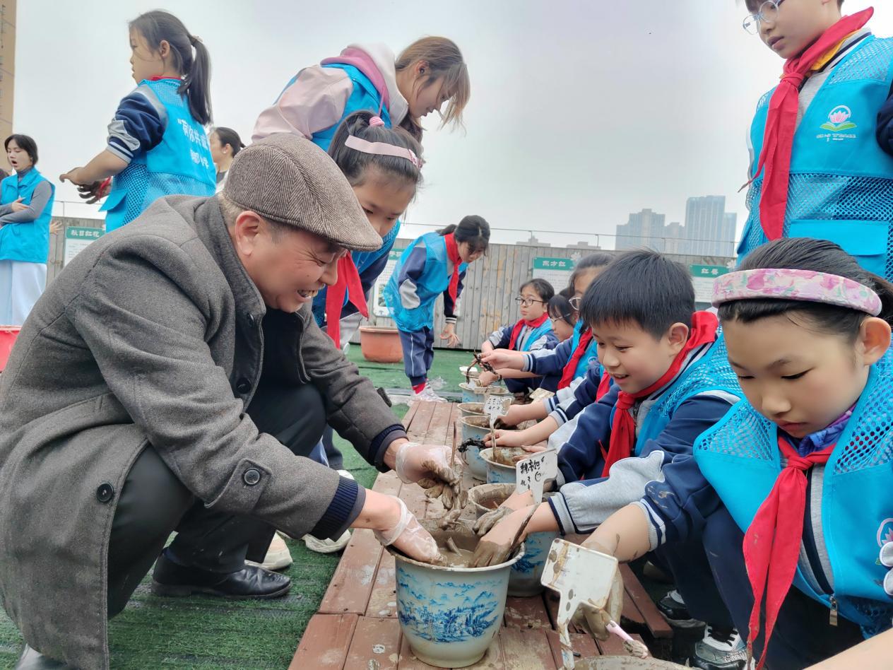 “王老师,盆子里的碗莲已经发芽了,为什么还需要‘翻盆分藕’?”401班高子茜同学好奇地问。王宁迪工程师拿起一盆碗莲,耐心地说:“就像我们小朋友长大了需要换大一点的鞋子和衣服,碗莲的根系在盆子里太挤了,养分也不够了,所以要给它们‘分家’,搬到更宽敞的新‘房子’里。”生动的比喻引得同学们会心一笑。