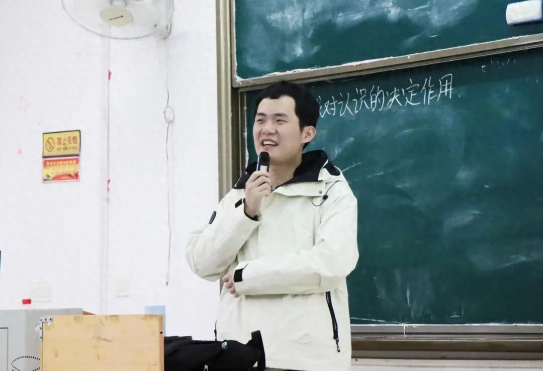 他用两会中的具体政策,逐一对应“实践对认识的作用”的四个维度。讲“实践是认识的来源”时,他举起政府工作报告。“这不是凭空写出来的。李强总理亲自主持多场座谈会,去实地调研,征集网民建议。为什么?因为认识只能从实践中来。”讲“实践是认识的目的”时,他强调:“规划是蓝图,报告是施工图。认识是为实践而认识。乡村振兴、产业转型——这些才是认识要回到的地方。”而当他讲到“实践是检验认识真理性的唯一标准”时,外卖小哥的故事又被拉了回来。“如果我们今天的政策,能让那个外卖小哥不再担心摔了没人管——那就说明我们的认识是对的。用什么检验?用他们的日子检验。”