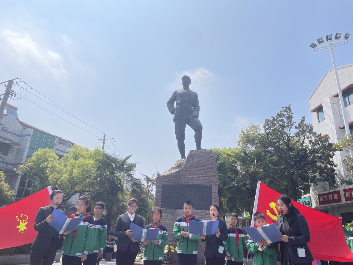 4月1日,武汉市蔡甸区奓山中心小学组织五年级全体师生,来到家乡革命伟人陈昌浩雕像前,开展“缅怀革命先烈,传承红色基因”清明祭扫活动,师生们以庄严的仪式追思革命先烈,厚植爱国情怀。