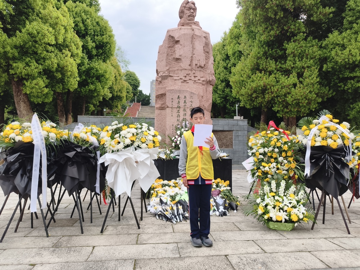 4月2日,清明节前夕,武汉市武珞路中学、武汉市武珞路实验初级中学联合武昌区洪山坊社区,组织辖区多所学校师生、家长代表及党员干部共百余人,走进施洋烈士陵园,开展“缅怀革命先烈 弘扬革命精神”祭扫活动。一堂别开生面的“行走思政课”在庄严肃穆的烈士墓前开讲。