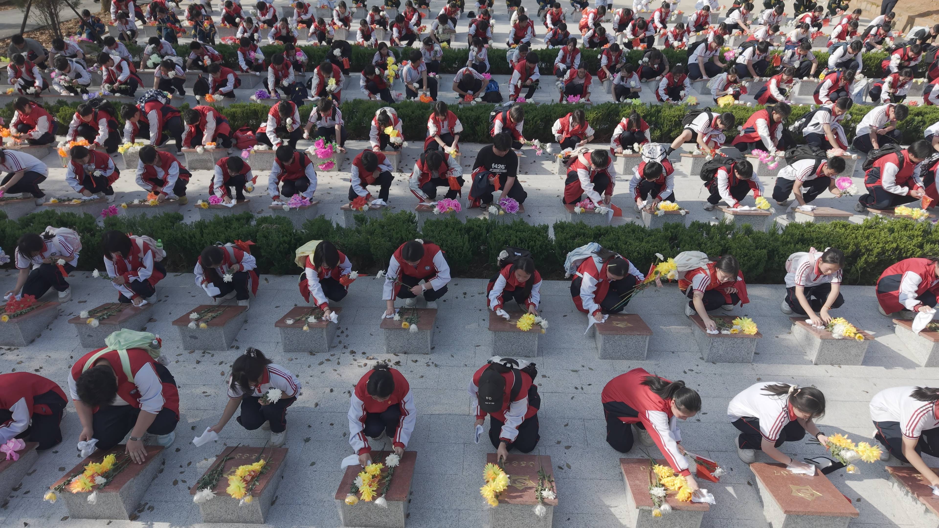 下午3时许,队伍抵达终点——湘鄂赣边区鄂东南龙港红军烈士陵园,全体师生举行庄严肃穆的祭扫仪式。在烈士纪念碑前,师生敬献花篮、聆听革命老战士讲述峥嵘岁月、庄严宣誓,并为革命烈士画像。在庄严肃穆的氛围中,全体师生向3011名红军烈士墓碑深深鞠躬、献上鲜花,轻轻拂去墓碑上的尘土,静思默哀,深切缅怀革命先烈。