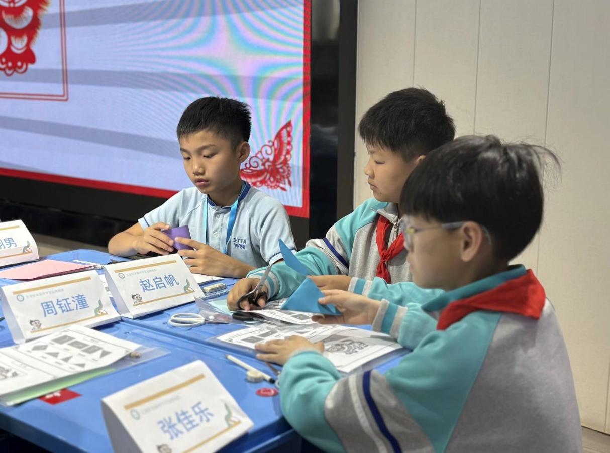 最具特色的“同上一堂课”活动上,学校精心准备非遗剪纸课程,以中华优秀传统文化为纽带,鄂港学生混合分组,在老师指导下共同创作剪纸作品。一把剪刀、一张红纸,剪出吉祥纹样,更剪出两地少年的真挚情谊。课上,两校互赠纪念礼物,传递美好祝福,定格温馨瞬间。