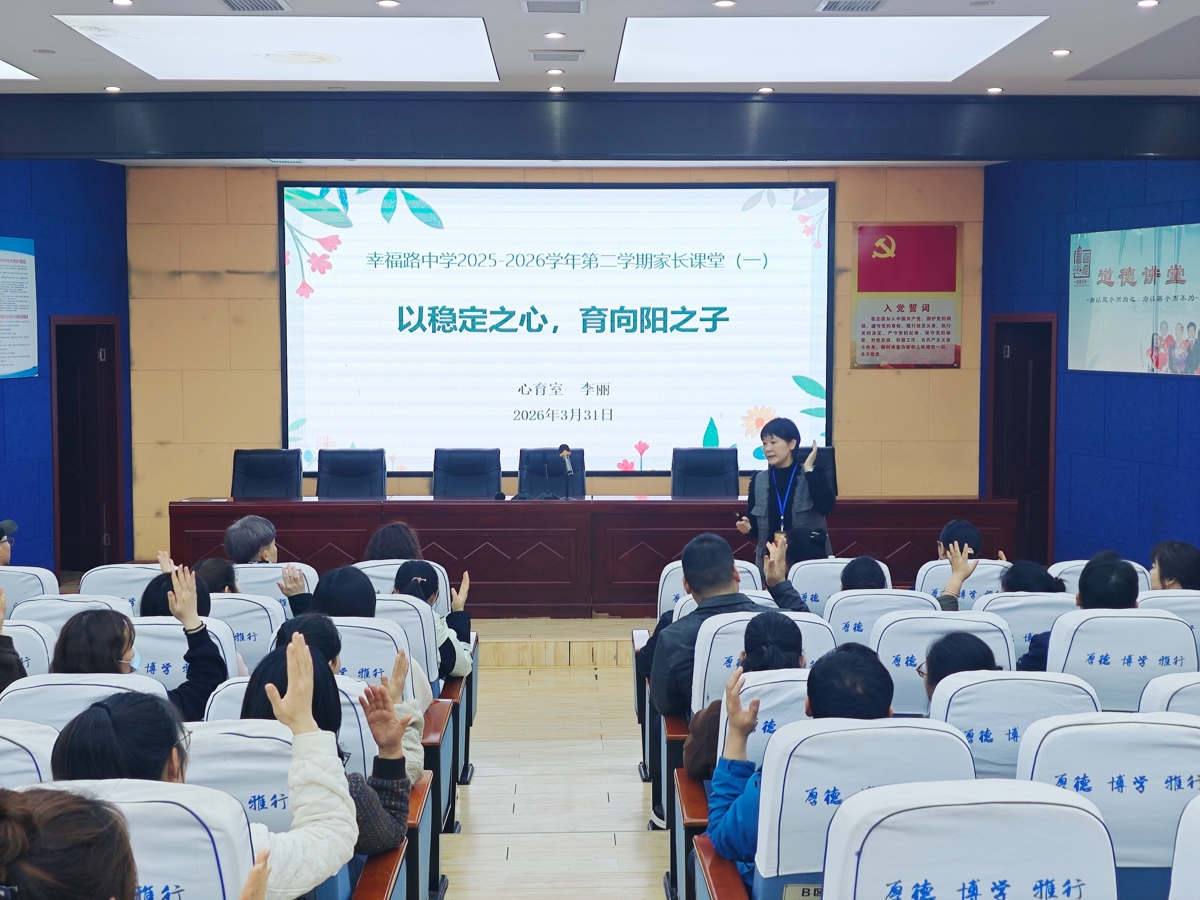 孩子的健康成长,离不开家庭的用心陪伴,更离不开家长的自我成长。家长课堂,是一场家校同心的双向奔赴,3月31日晚7点,武汉市蔡甸区幸福路中学举办了本学期第一场家长课堂,心育室李丽主任担任主讲人,助力家长调整心态,缓解育儿焦虑,以稳定之心,育向阳之子。