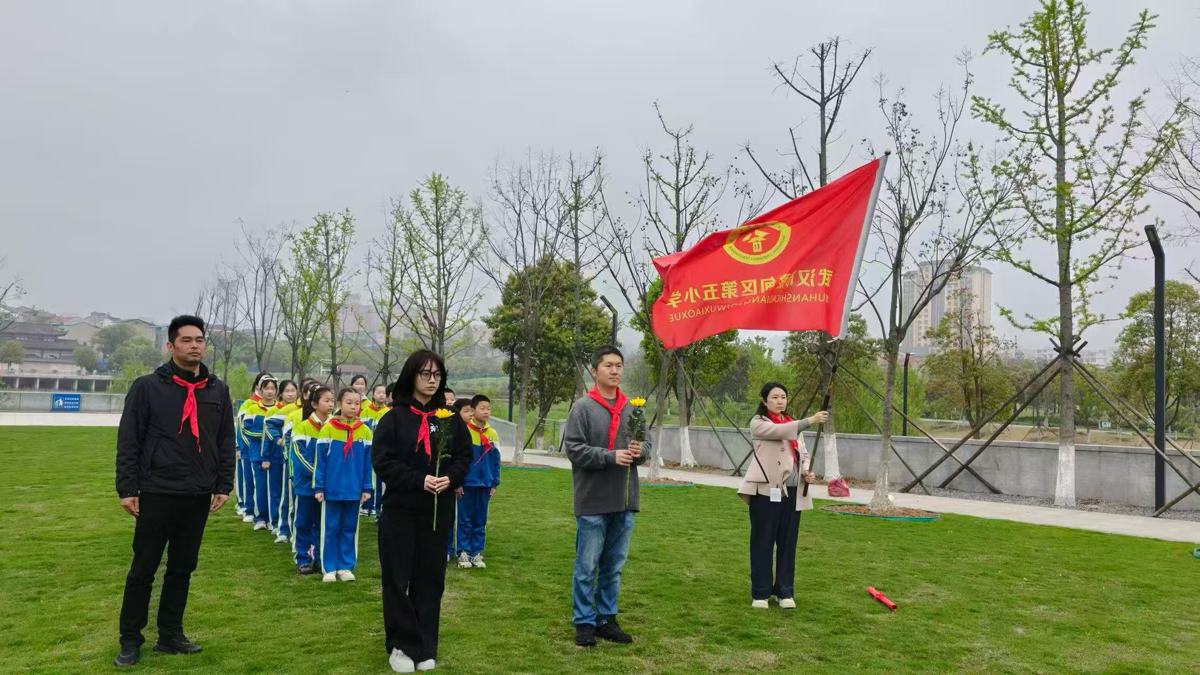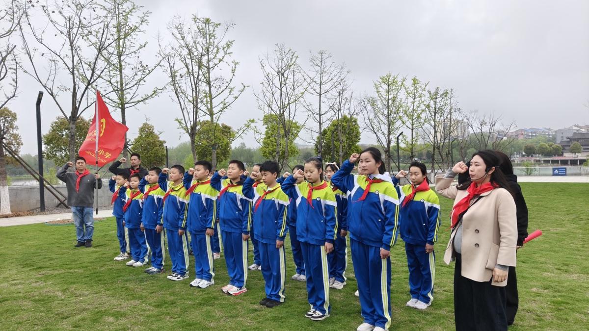 在鲜红的队旗下,全体少先队员举起右拳,庄严宣誓。铿锵有力的誓言回荡在雕像广场上空,传递出新时代少年继承先烈遗志、奋发向上的坚定决心。