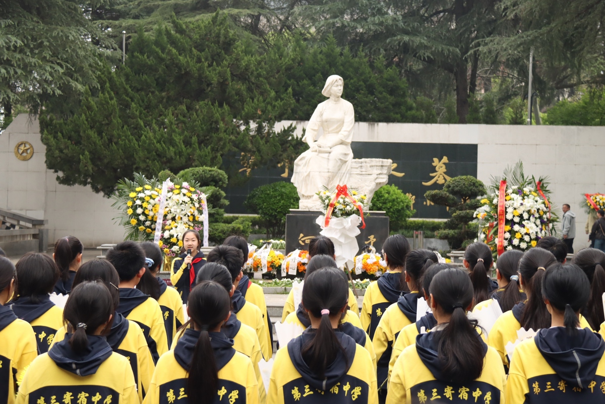 翠柏凝思,青松垂泪,又是一年清明时。4月3日,清明节来临之际,武汉市第三寄宿中学八年级学生代表在校团委和学生中心的联合组织下,奔赴汉阳区龟山西巅的向警予烈士陵园,开展“清明祭英烈,共铸中华魂”主题教育,以青春之名缅怀革命先烈,以赤诚之心传承红色精神,让爱国情怀在少年心中深深扎根。