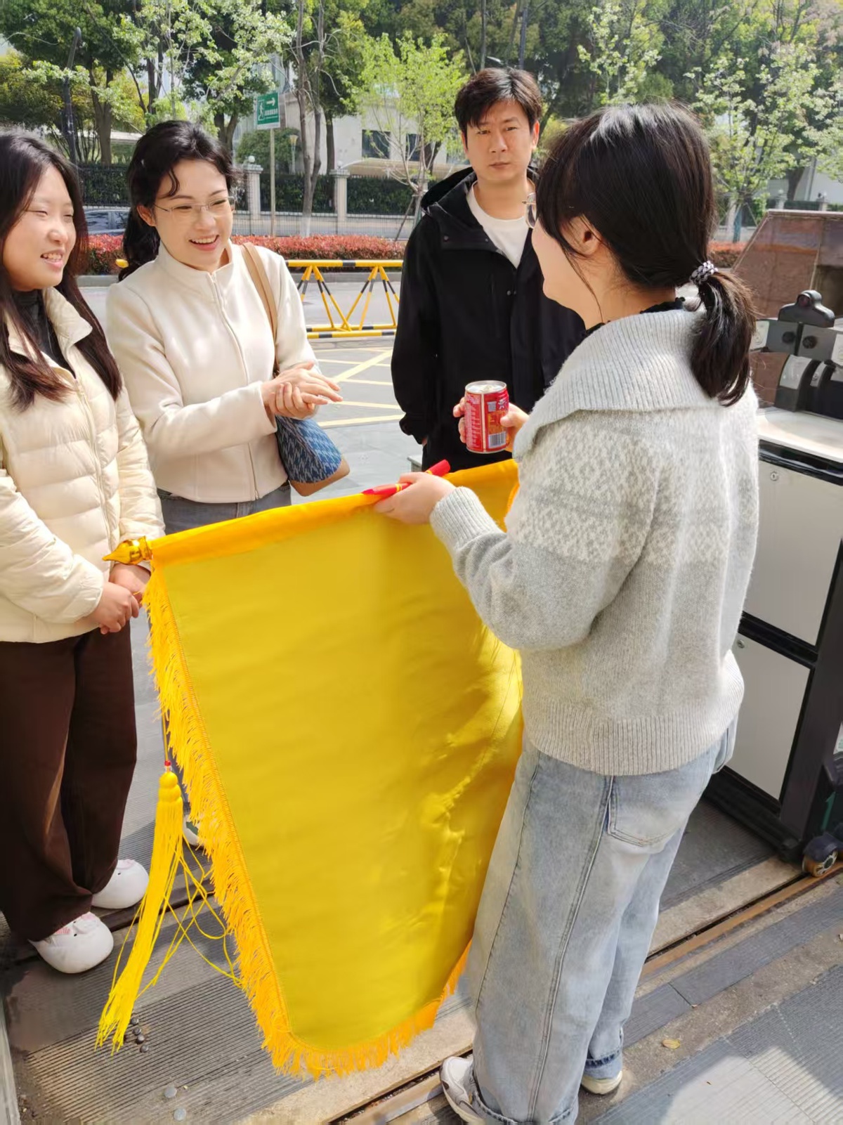 事情过去了一个多月,没想到,失主特意定制了一面锦旗,送到了学校。