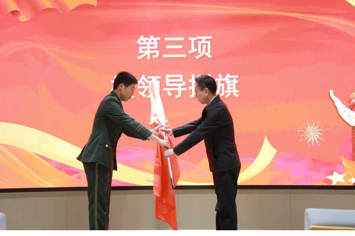 这支队伍的名字别具深意——“青锋”既寓意青年先锋,又象征锐利锋芒。成立大会在庄严的国歌声中拉开序幕。该校副校长刘张虎出席大会,并为“知行青锋连”授旗。接过旗帜的学生代表漆家乐用力挥动连旗,台下59名身着军装或作训服的队员目光坚定。