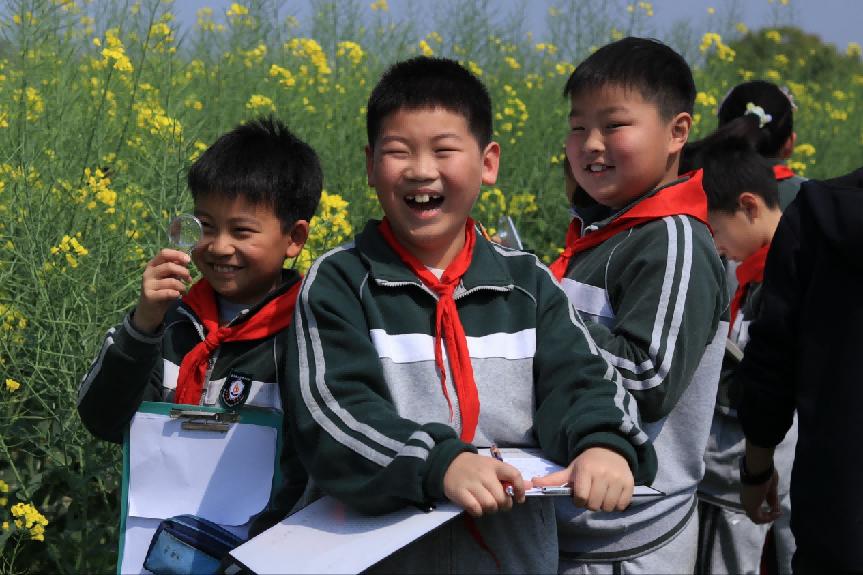 学生们自有感悟。在课堂上总坐不住的李同学,这次在“五感寻春天”的心理课上静了下来,他说:“原来‘桃花水’时期的阳光是比较暖但不晒的,风吹过油菜花会有很轻的沙沙声,山边水边田边的空气味道有很大不同。”