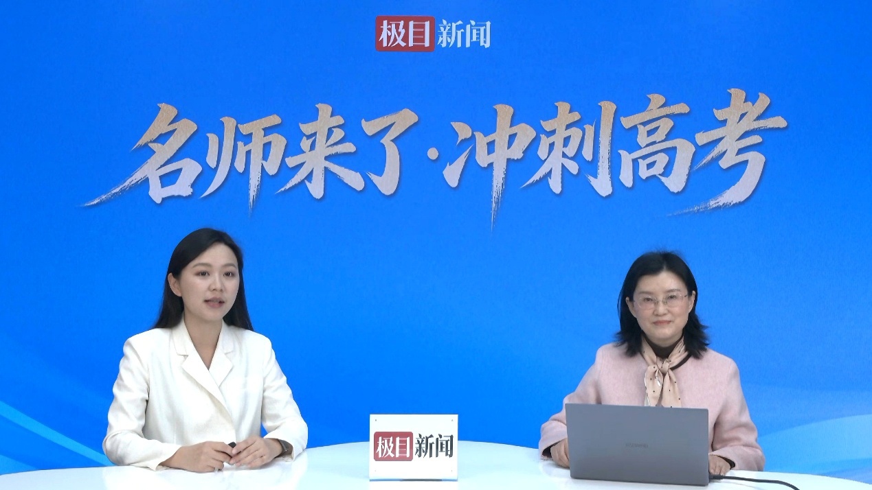 姜冬霞(右)做客新闻“名师来了·冲刺高考”栏目