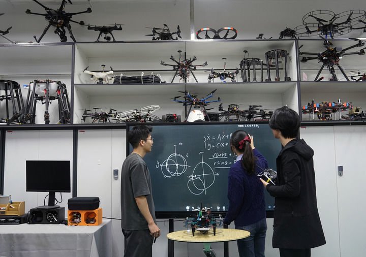 2023年11月4日,在上海交大机器人研究所的无人系统实验室,学生在进行讨论。新华社记者 刘颖 摄
