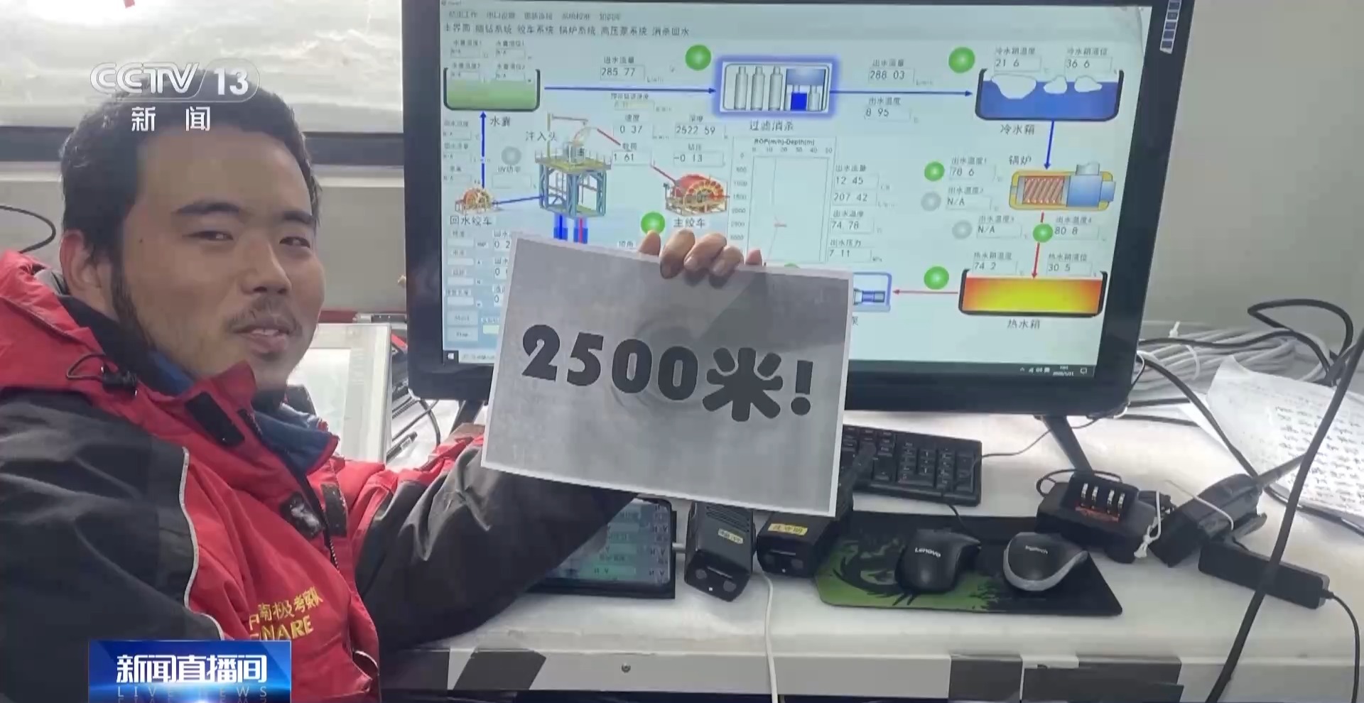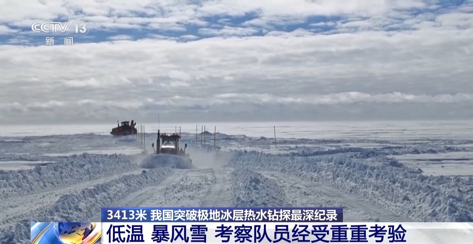 中国第42次南极考察队冰下湖队队长 郭井学:此前,是美国等西方国家,他们开展了热水钻探,之前最深纪录是2500米左右。这次我们国家第一次开展这个项目,到了3400多米,这是一个非常大的突破,是目前国际上最深的钻探纪录。