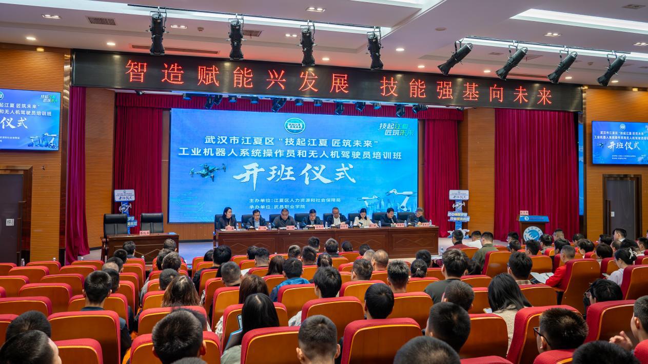 本次培训班由武昌职业学院承办,是江夏区落实“技起江夏、匠筑未来”人才兴楚工程的重要举措,培训针对产业链龙头企业和急需紧缺职业(工种),是武汉市首个工业机器人系统操作员和无人机驾驶员专业培训班。