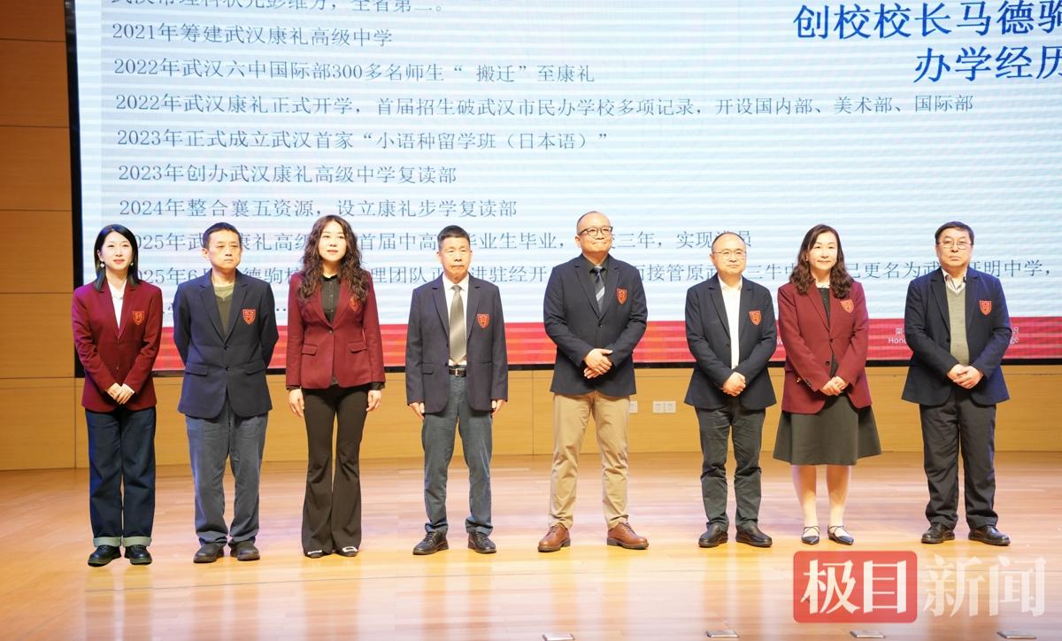 以原武汉六中校长、国务院政府特殊津贴专家、数学特级教师、全国教育系统劳动模范马德驹为核心的校长管理团队首次公开正式亮相,并正式发布贯通“国内中高考+国际升学”的双通道课程体系。