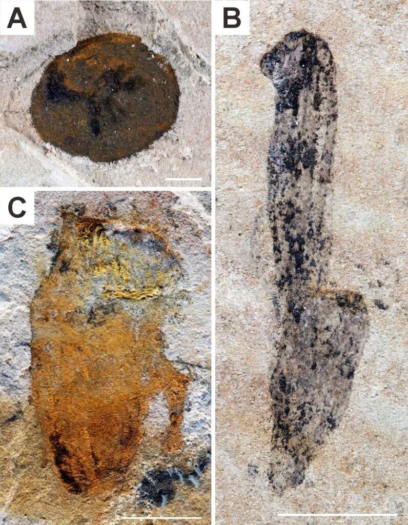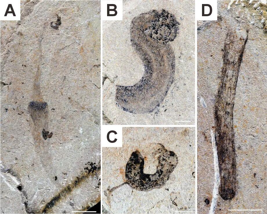 △江川生物群中保存的两侧对称动物化石。(云南大学古生物研究院供图)