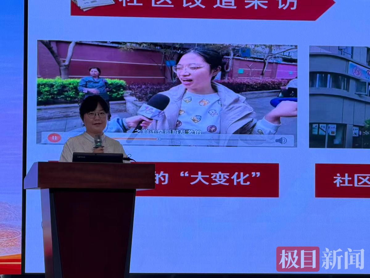 教研现场,从一张张照片开始,北湖小学三年级教师杨茹荃在说课中展示了孩子们通过社区改造小记者等活动,听长辈讲述过去的住房条件,再对比今天家门口的口袋公园、社区食堂、加装电梯,用脚步丈量15分钟幸福圈,初步表达了对“全过程人民民主”的理解。