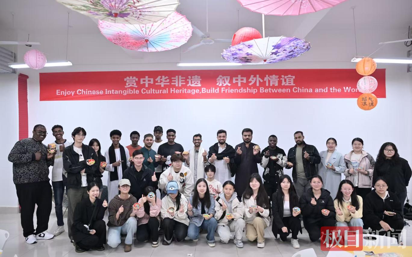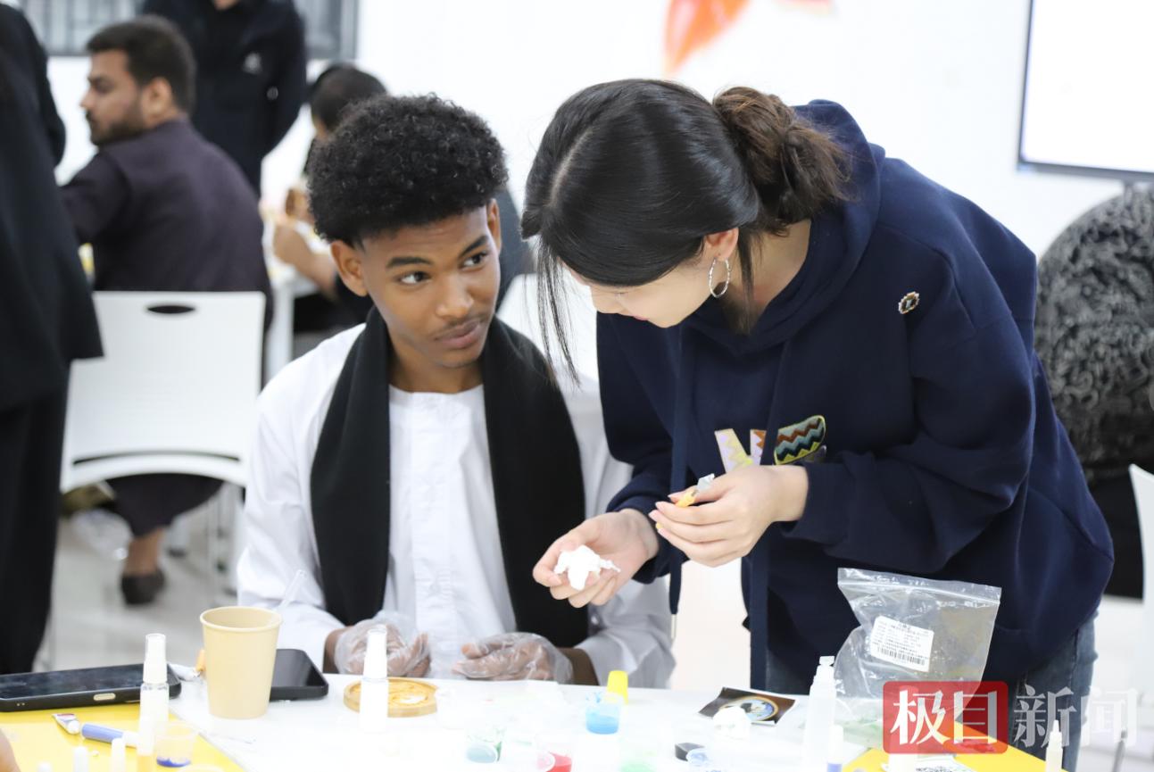 创作间隙,中外学子围坐在一起,一边交流创作心得,一边畅谈文化差异,欢声笑语间,陌生感悄然消散,友谊在指尖流转、在交流中升温。不同国度的文化碰撞交融,让这堂非遗美育课更具温度与意义,也让中华非遗技艺在跨文化交流中焕发新的生机。