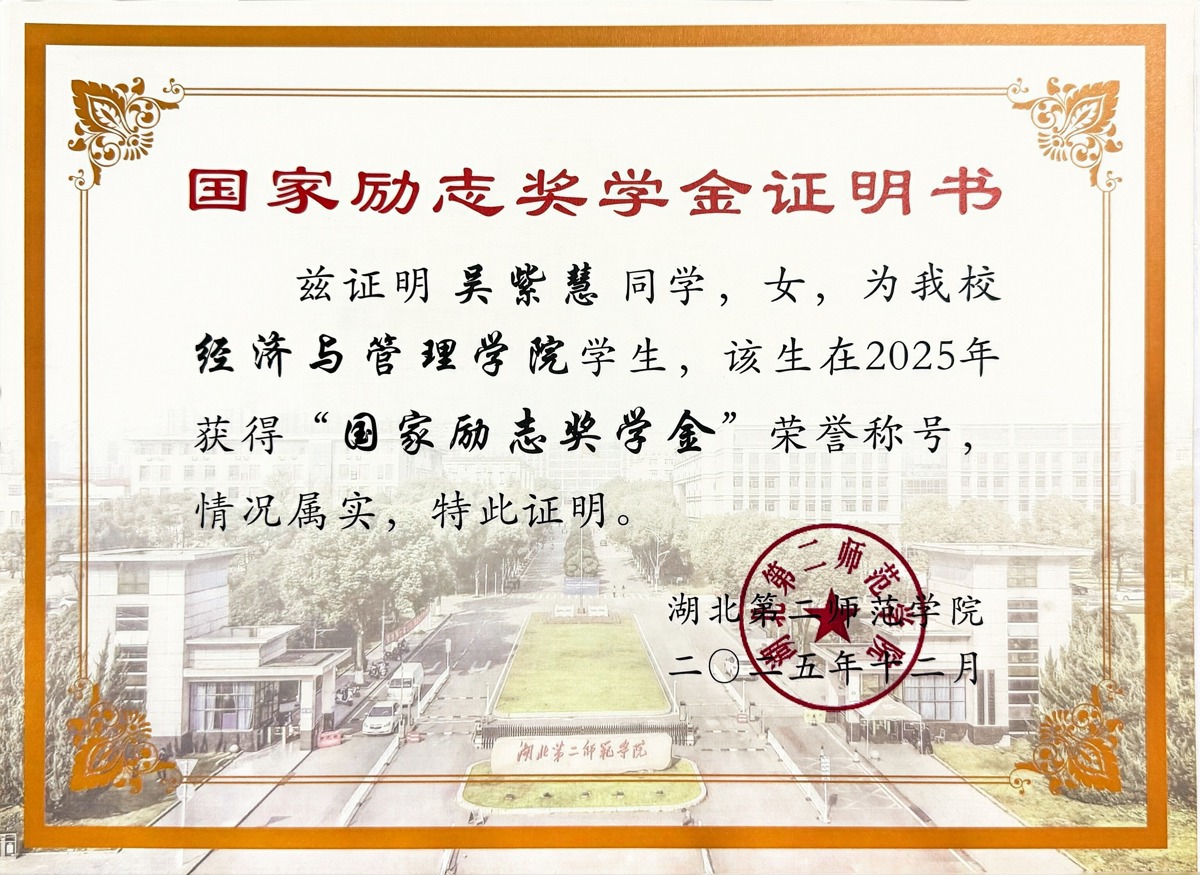 之后,她通过努力进入湖北第二师范学院读本科。本科期间,她的学习成绩和综测成绩同样位居班级前列,再次拿到国家励志奖学金。她还通过了英语四六级考试,在全国大学生英语词汇能力大赛中拿了二等奖。