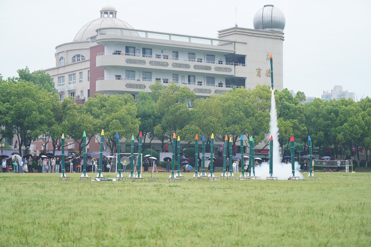 5、4、3、2、1……一枚枚“火箭”依次升空,开启科技节序幕。随后,大型无人机“航母”掠过操场上空,天女散花般放出无数小“飞机”,引来现场学生和家长的阵阵惊呼。