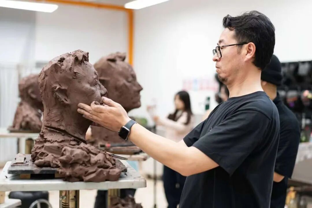 中国美术学院雕塑系具象工作室陈涛副教授在写生现场