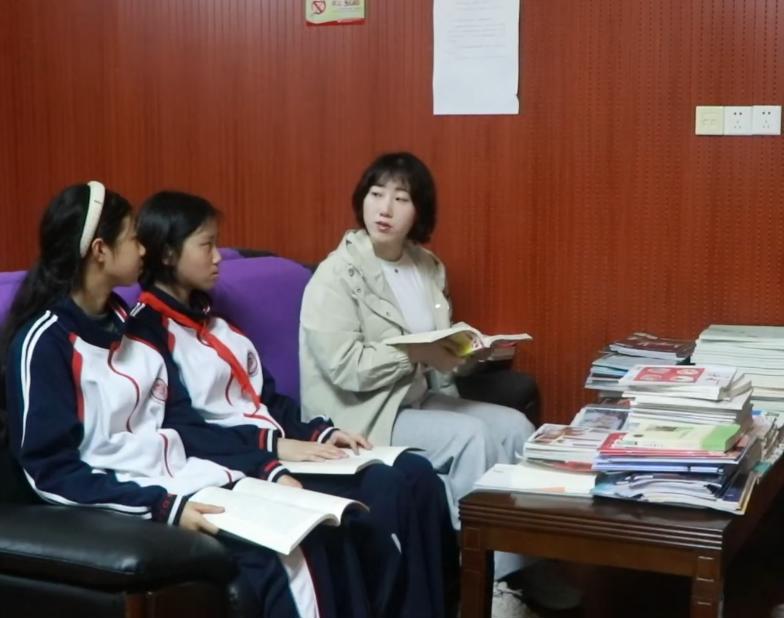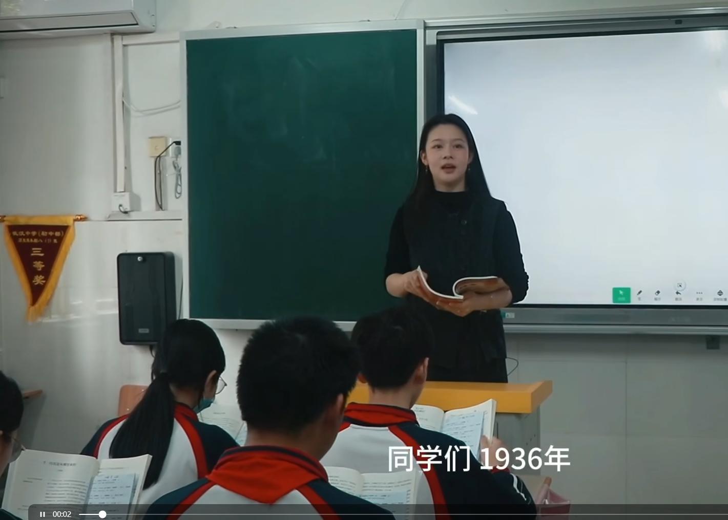 在七年级,语文教师陪伴同学们静坐于一隅,共读红色典籍。不是简单的“你读我听”,而是边读边议、边思边辩。一本本泛着油墨香的红色读物,在学生手中传阅;一句句朴实的感悟,在师生之间流淌。在八年级,语文教师则带着学子们深情诵读红色名篇。镜头里,孩子们声音铿锵、意气昂扬,琅琅书声穿过走廊,与这所百年名校的红色文脉遥相呼应。